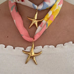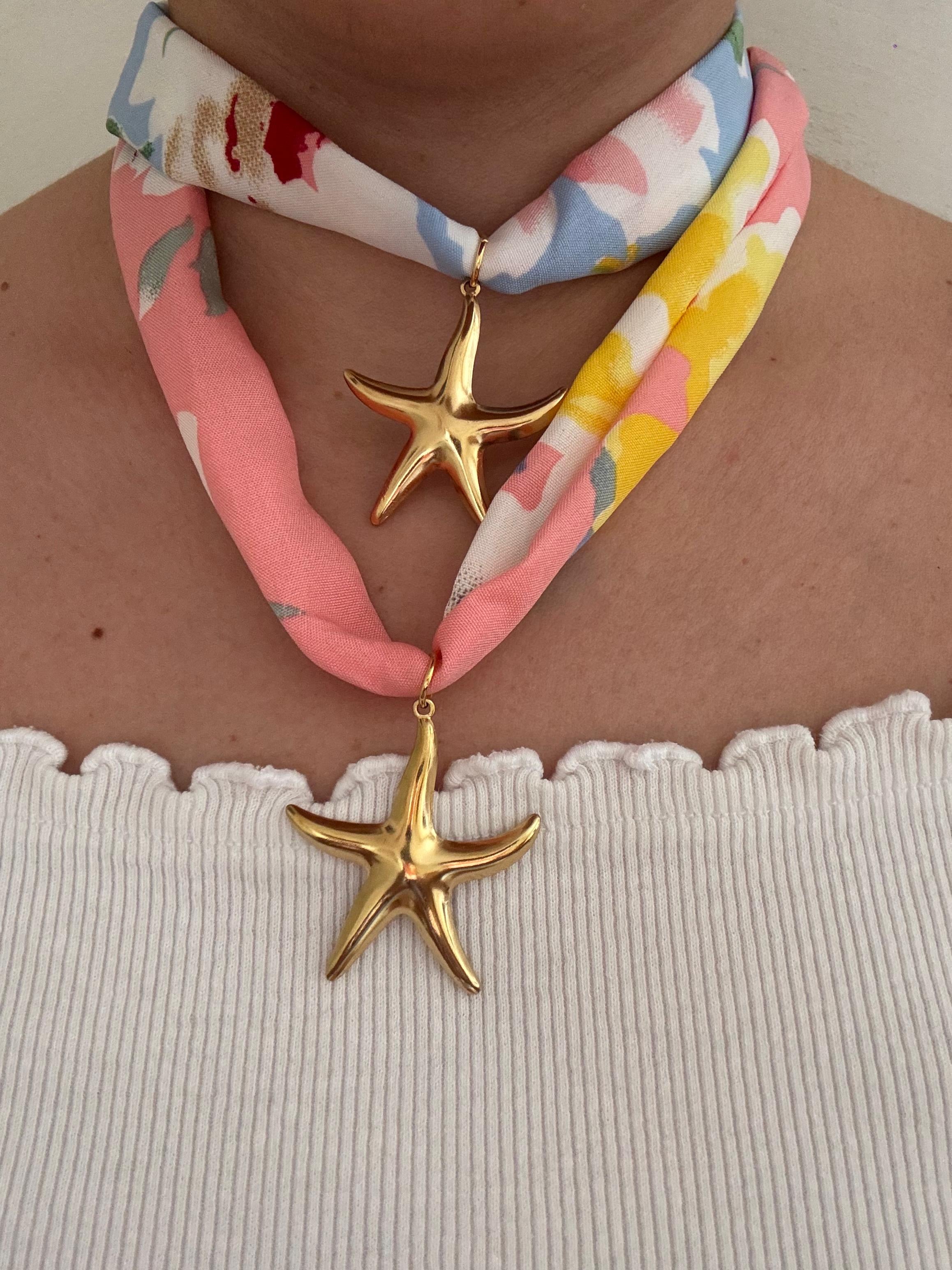 Audace, giocoso e perfetto per l’estate. Il Bandana Babe è un choker che unisce lo stile street alla freschezza delle onde. Realizzato con un doppio nastro in tessuto bandana , è impreziosito da 1 stella marina dorata in acciaio inossidabile, luminosa e leggera.