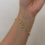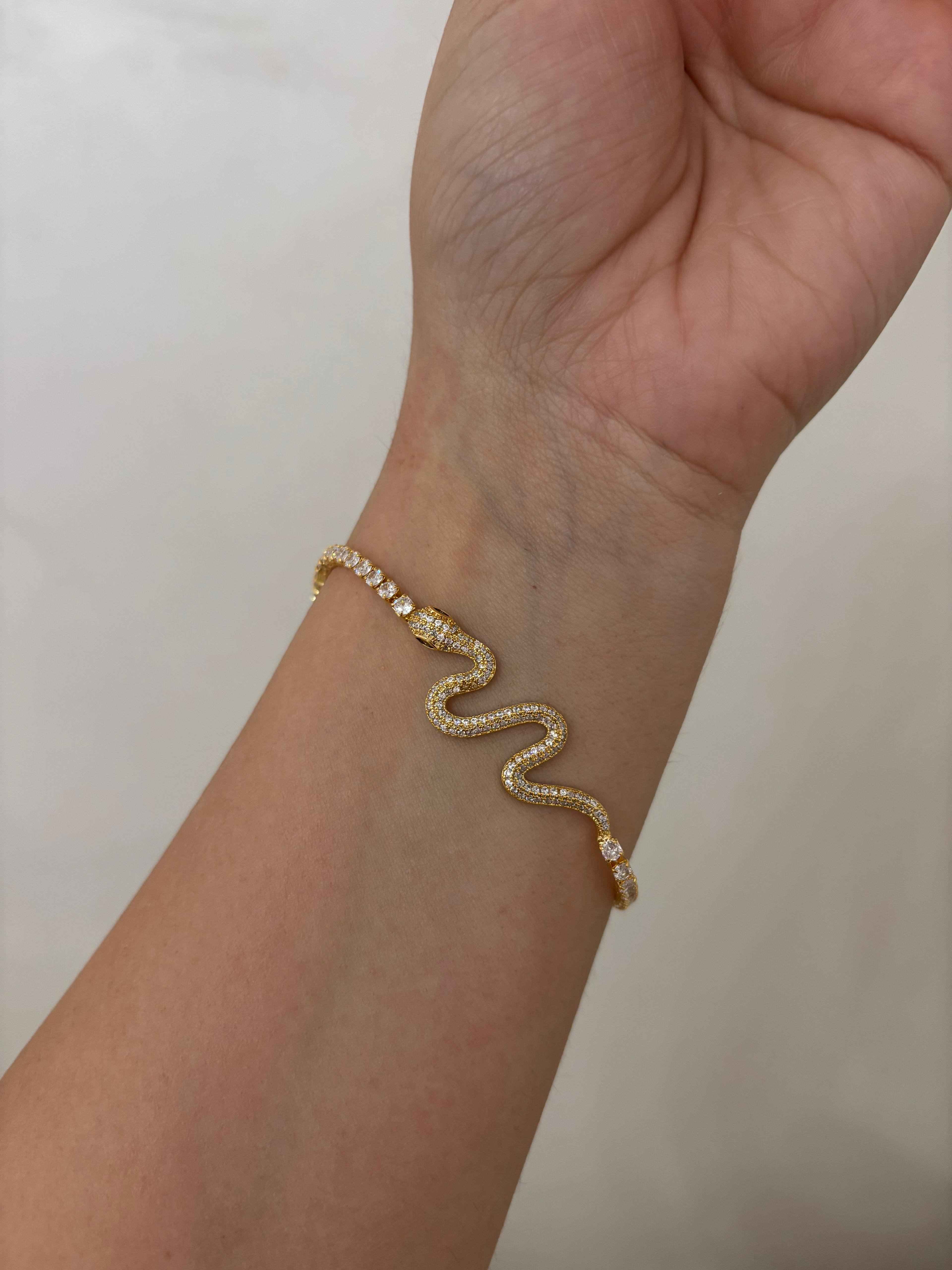 Il Fusion Glow Bracelet unisce due anime diverse in un design unico: da un lato, la brillantezza dei cristalli in stile tennis; dall’altro, la fluidità della maglia serpentata dorata. Un equilibrio perfetto tra luce e forza, ideale per chi ama distinguersi con raffinatezza.