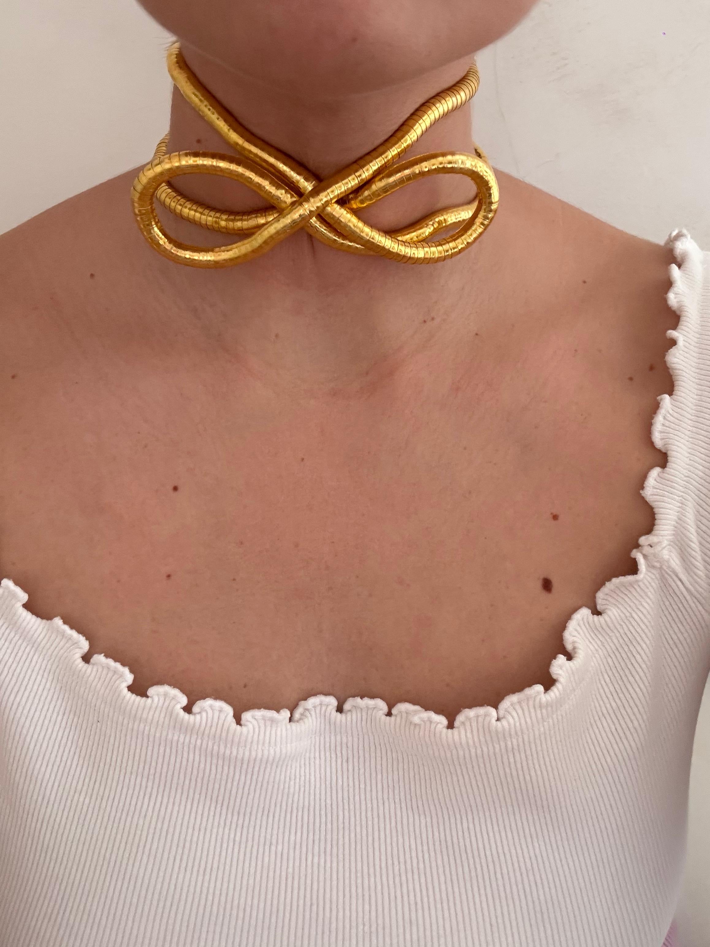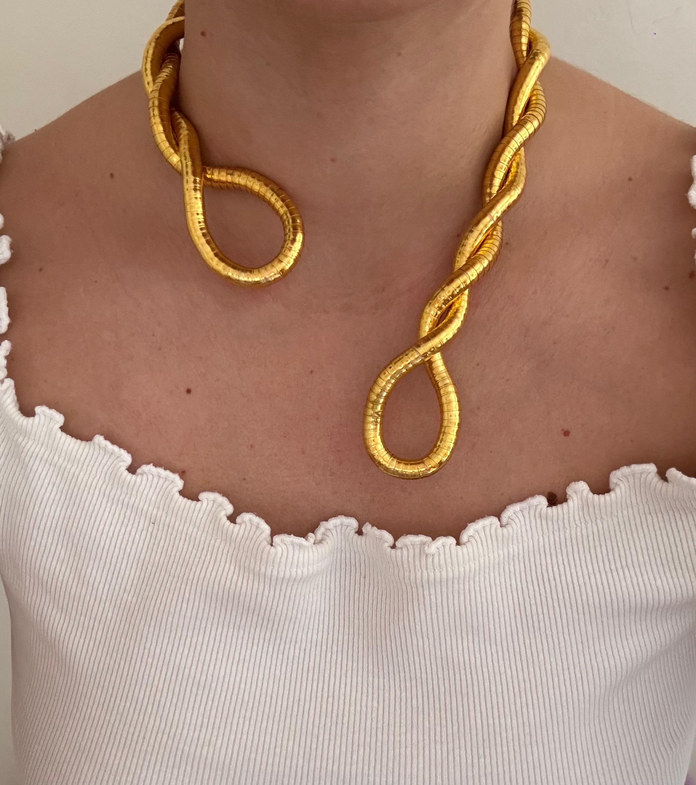 Il suo design effetto snake la rende perfetta per chi ama distinguersi con eleganza e carattere. Da indossare aperta, attorcigliata o a spirale — sei tu a decidere la forma.