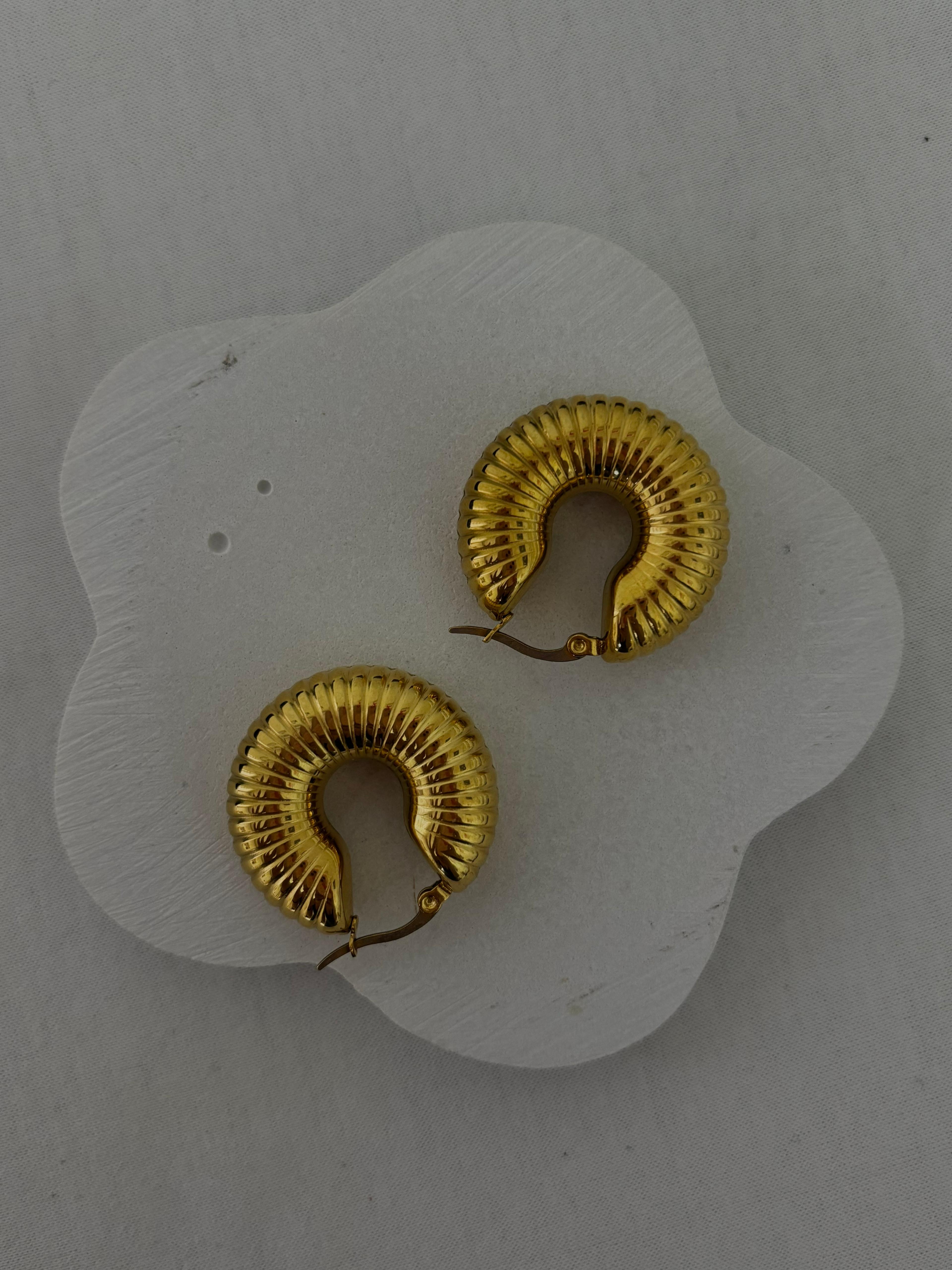 Piccoli cerchi in acciaio dorato decorati con foglie delicate e zirconi incastonati, ispirati alla natura e all’eleganza delle corone d’alloro. Luminosi ma discreti, sono perfetti per ogni occasione, da un aperitivo elegante a un look da cerimonia.