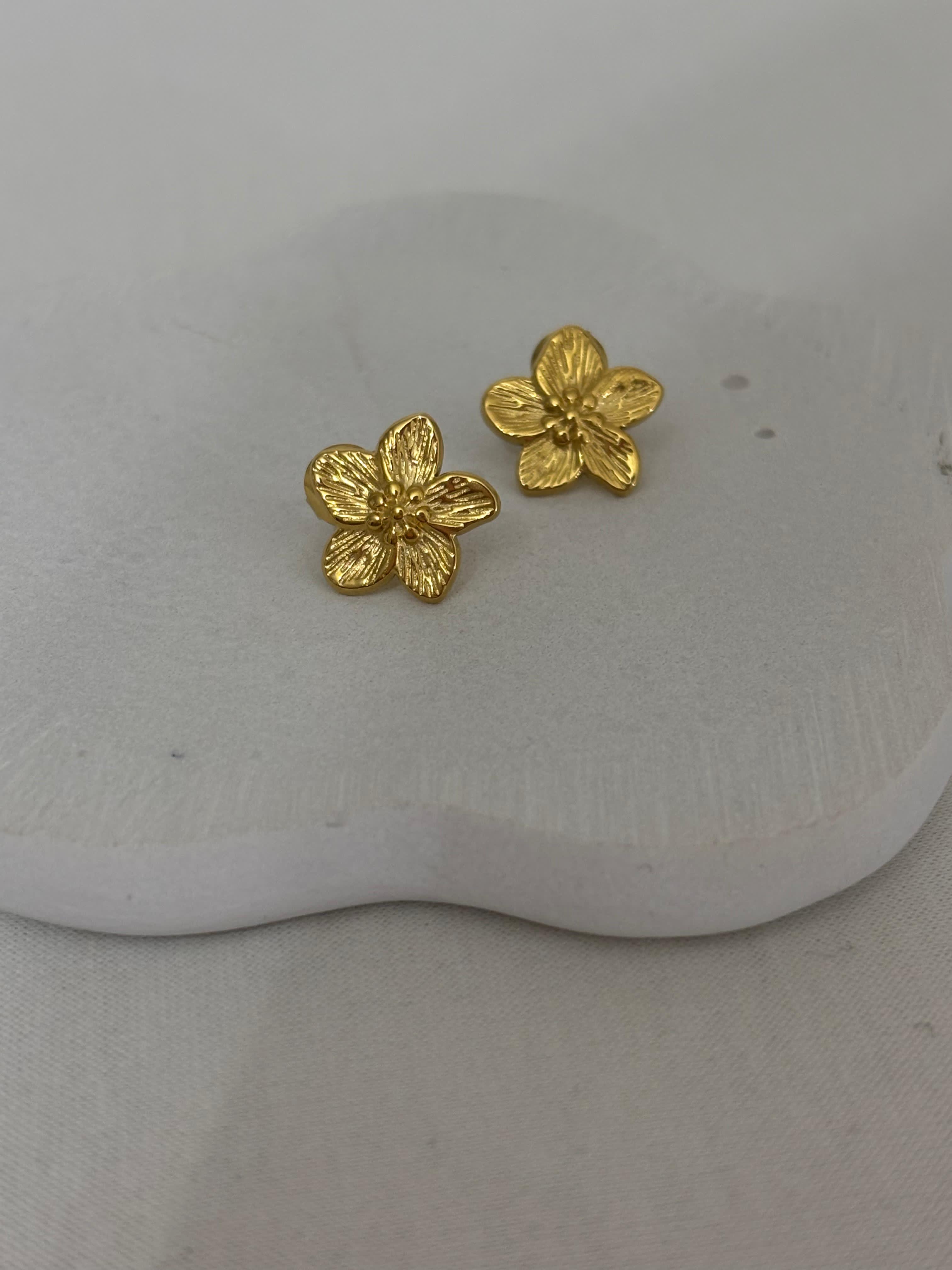 Gli orecchini Sakura Studs sono un omaggio delicato alla bellezza dei fiori. Realizzati in acciaio dorato, con petali scolpiti in rilievo e dettagli realistici, sono perfetti per chi ama uno stile romantico ma raffinato.